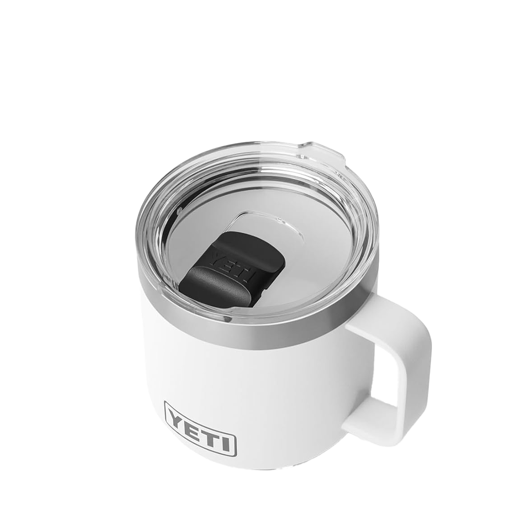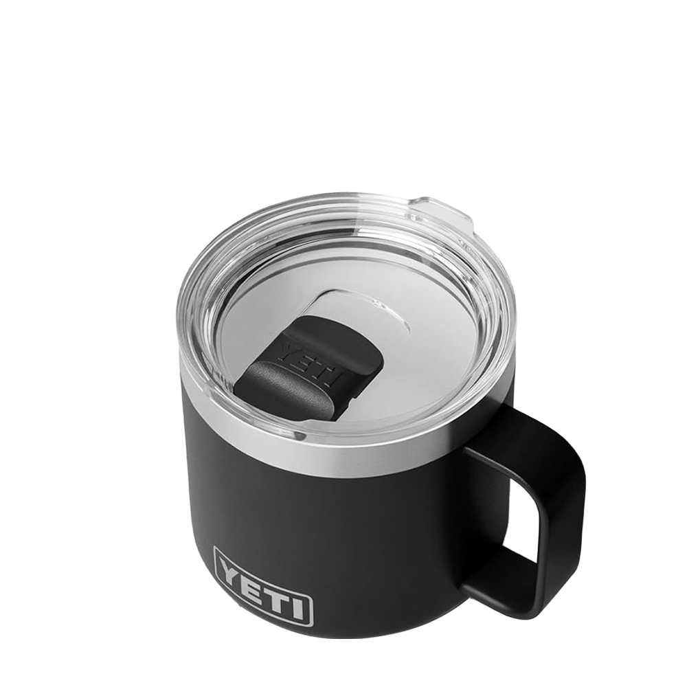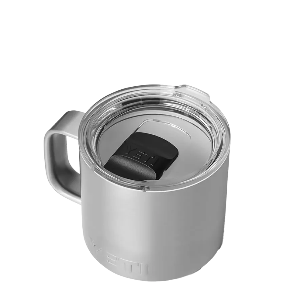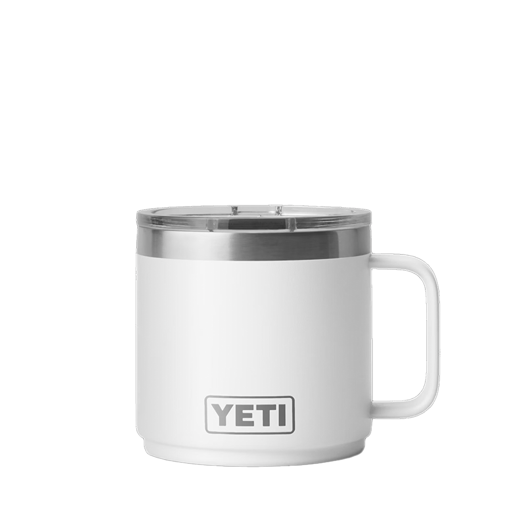 The YETI Rambler Mug 2.0 14 oz now comes with a ceramic upgrade. These stackable mugs will keep your drinks like coffee or tea hot or afternoon iced brews cold at the right temperature for hours. Enjoy the taste of every sip with the new DURASIP™ ceramic-lined interior. Non-stick, stain-resistant and fused to the durable stainless steel, this ceramic is tough enough for any adventure. The double-walled vacuum-insulated stainless steel is puncture and rust-resistant. Comfortably hold with the 360 degree welded handle and keep splashes at bay with the MagSlider™ lid.