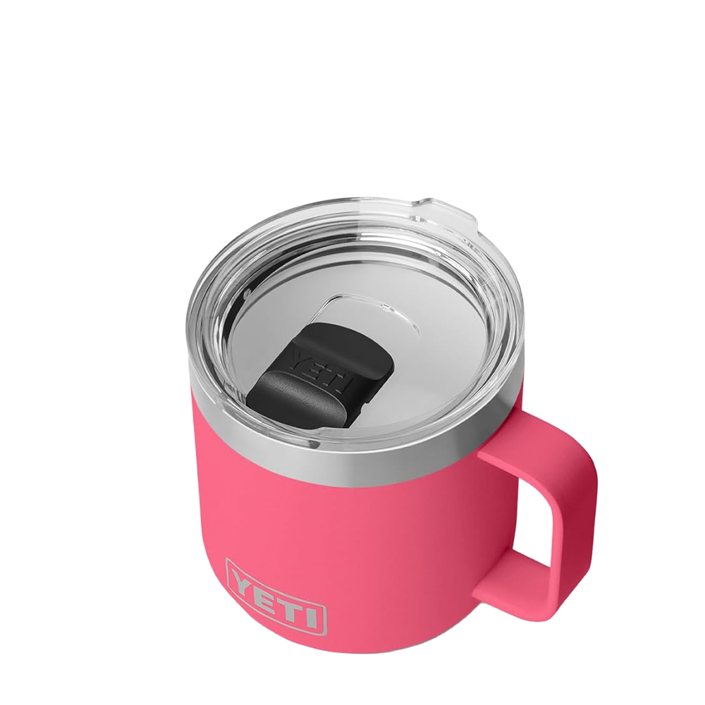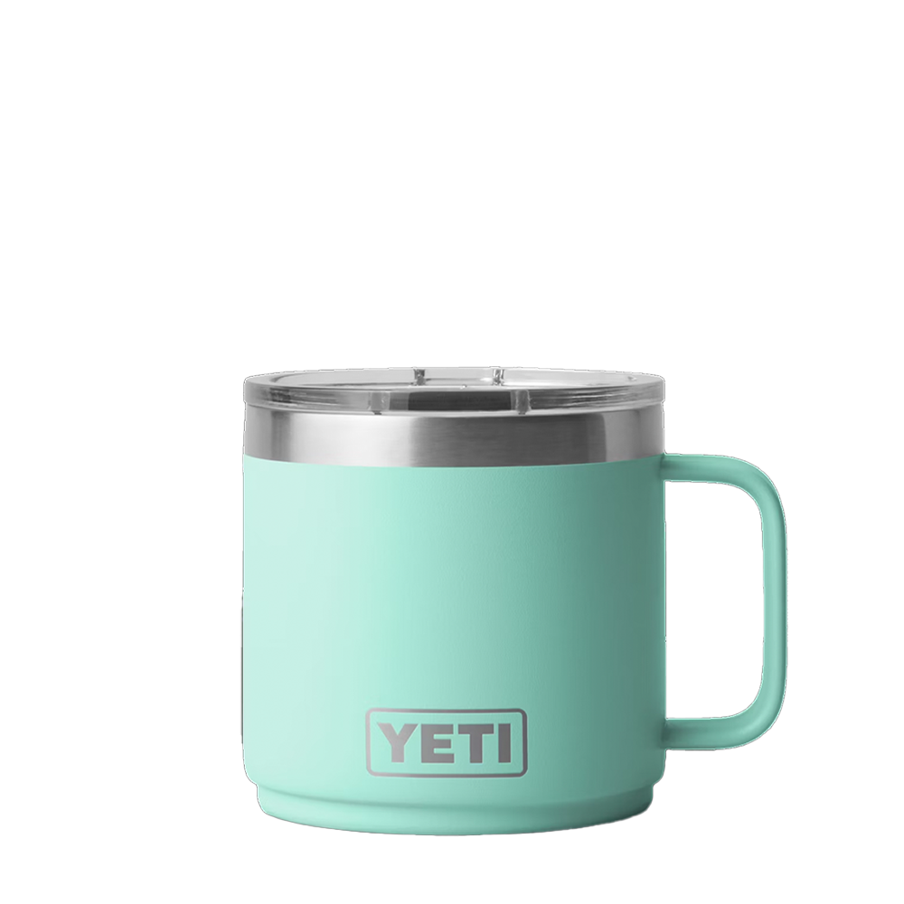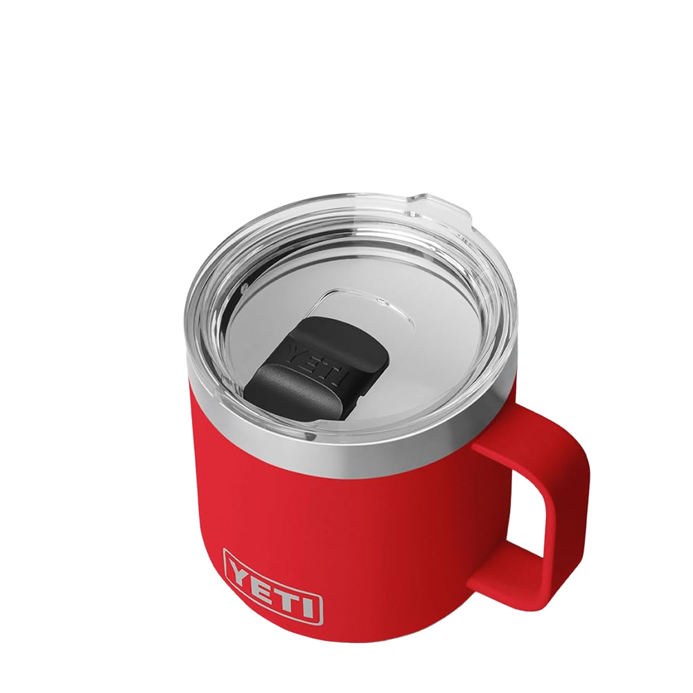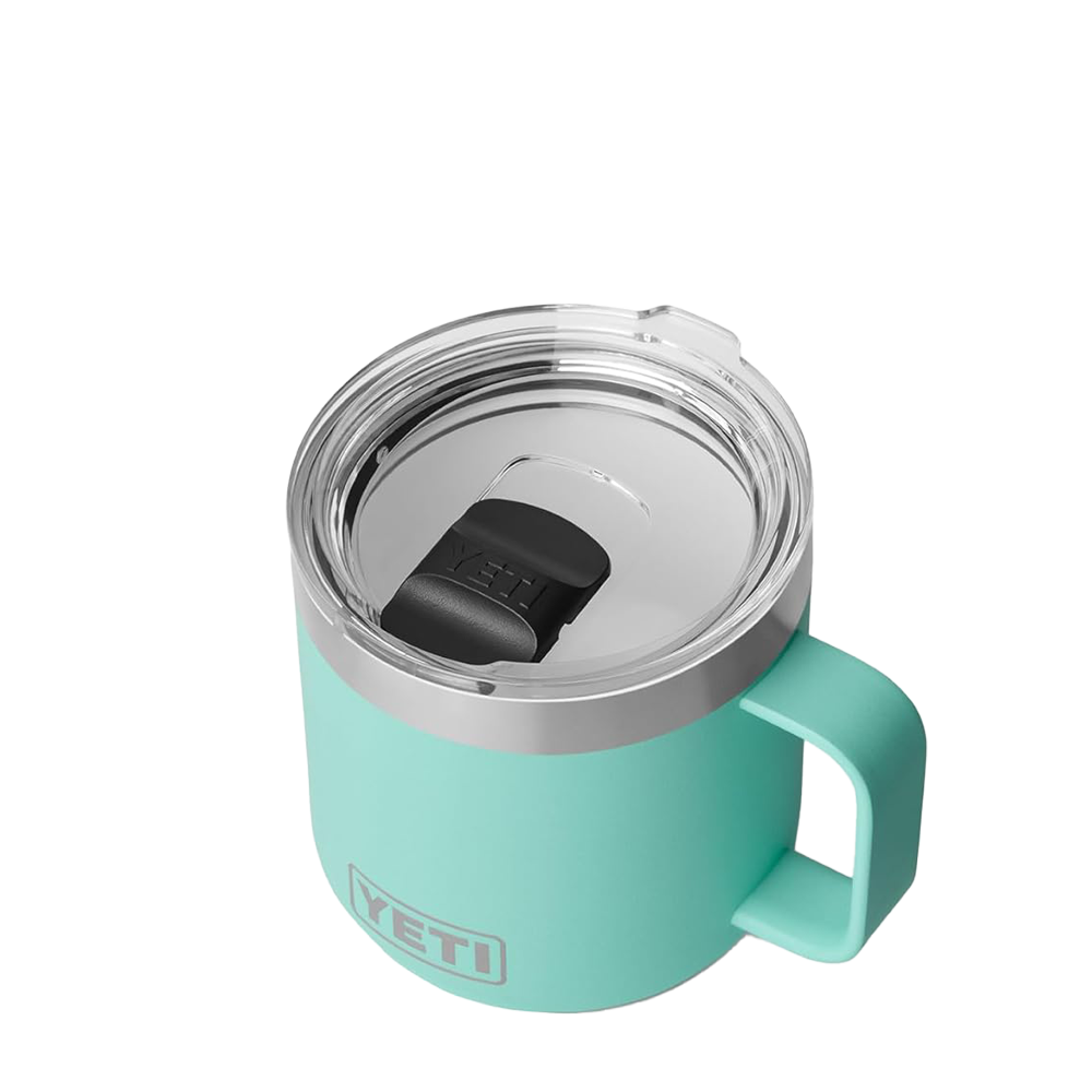 The YETI Rambler Mug 2.0 14 oz now comes with a ceramic upgrade. These stackable mugs will keep your drinks like coffee or tea hot or afternoon iced brews cold at the right temperature for hours. Enjoy the taste of every sip with the new DURASIP™ ceramic-lined interior. Non-stick, stain-resistant and fused to the durable stainless steel, this ceramic is tough enough for any adventure. The double-walled vacuum-insulated stainless steel is puncture and rust-resistant. Comfortably hold with the 360 degree welded handle and keep splashes at bay with the MagSlider™ lid.