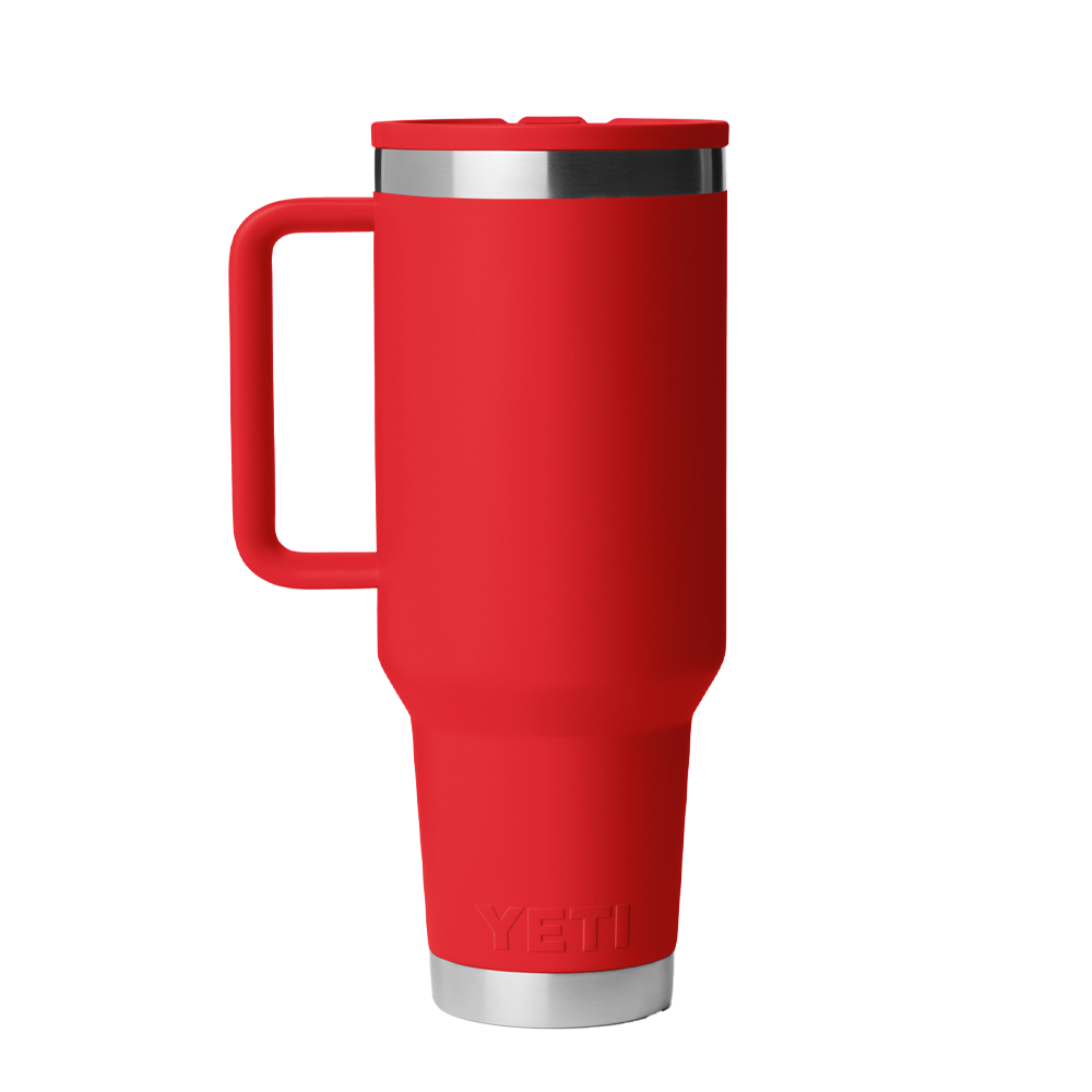 The YETI Rambler Travel Straw Mug is constructed with stainless steel and double-wall vacuum insulation to keep your favorite beverages ice cold for hours. Lock every drop inside with the color-matched, flip-up straw lid. Adventure-ready and fully leakproof when closed, you can toss it in your bag, duffle, or backpack worry-free The elevated welded handle provides a comfortable hold for both lefties and righties, while the cupholder friendly base makes this mug your perfect everyday travel companion.